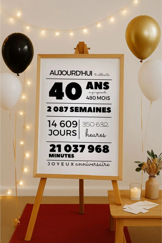 Affiche 40 ans, 480 mois, 2087 semaines - Carte de félicitations