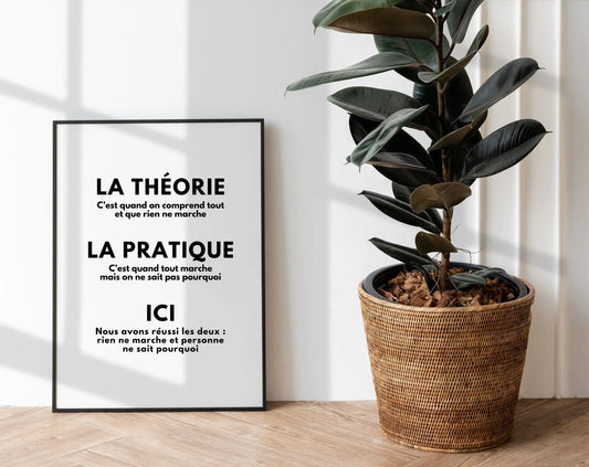 Affiche bureau La Théorie et la pratique – Humour au travail