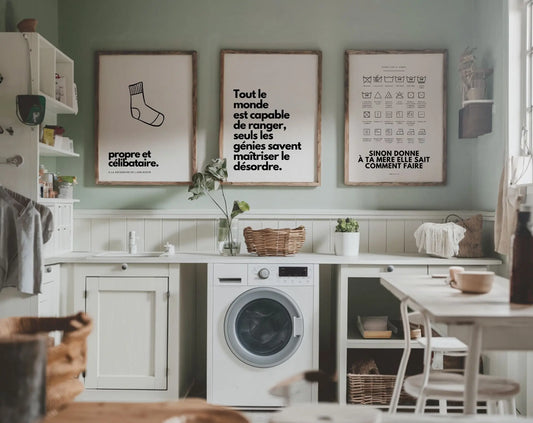 Affiche propre et célibataire - Affiche déco humour buanderie