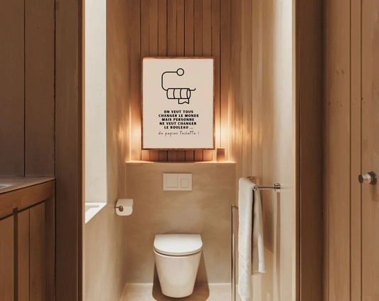 Affiche Les toilettes, le trône, le petit coin, le pipi room... - Poster humour WC
