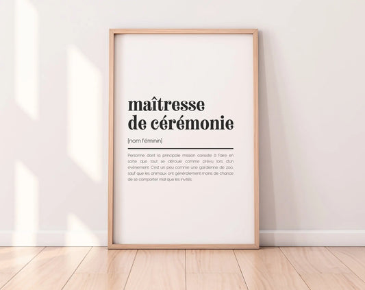 Affiche définition maitresse de cérémonie - Affiche définition humour mariage