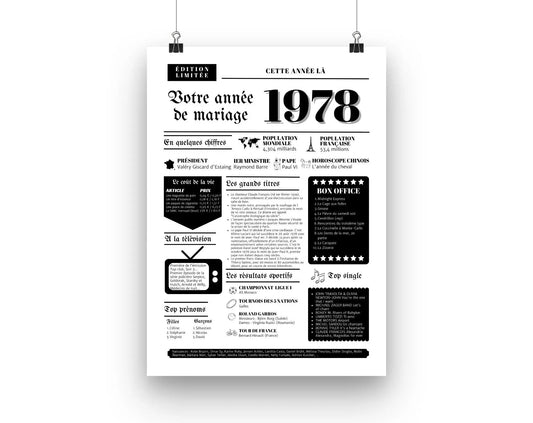 Affiche année de naissance 1978 - Cadeau anniversaire 47 ans