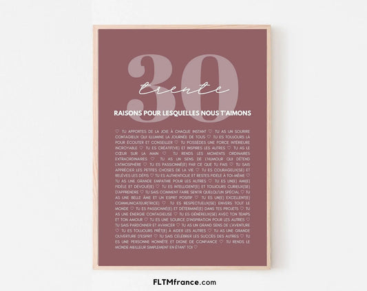 30 raisons pour lesquelles nous t'aimons rose - Cadeau anniversaire 30 ans