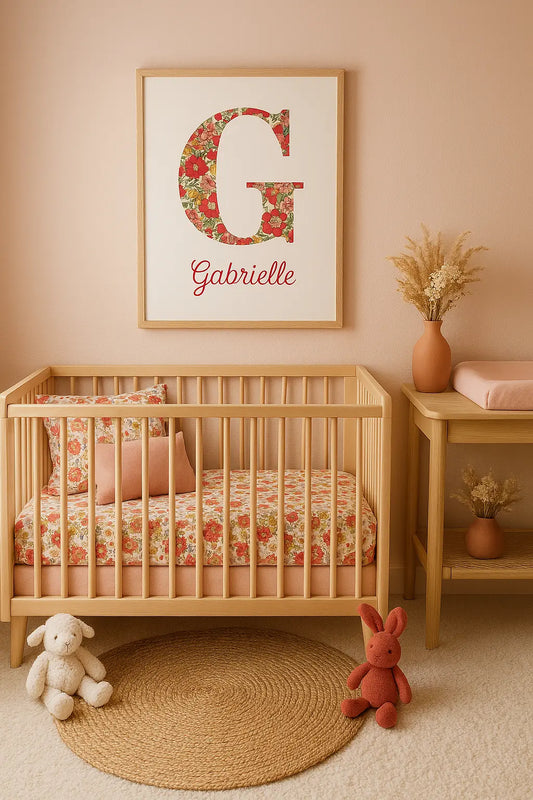Affiche Liberty Betsy Grenadine personnalisée - Poster initiale avec prénom