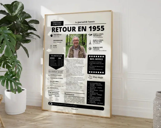 Affiche rétrospective année 1955 - Cadeau personnalisé 70 ans