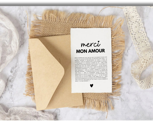 Carte Merci Mon amour - Carte d'amour Saint-Valentin