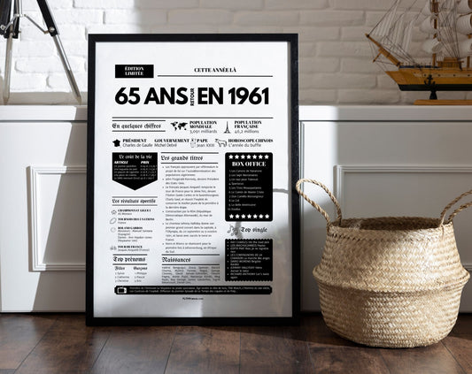 Affiche 65 ans retour en 1961 - Journal de l'année