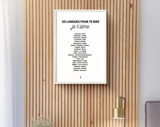 Comment dire Je t'aime en 20 langues - Affiche Saint-Valentin