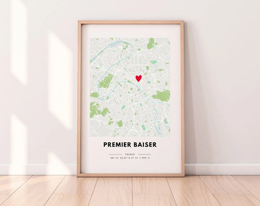 Premier baiser - Affiche carte de ville personnalisée