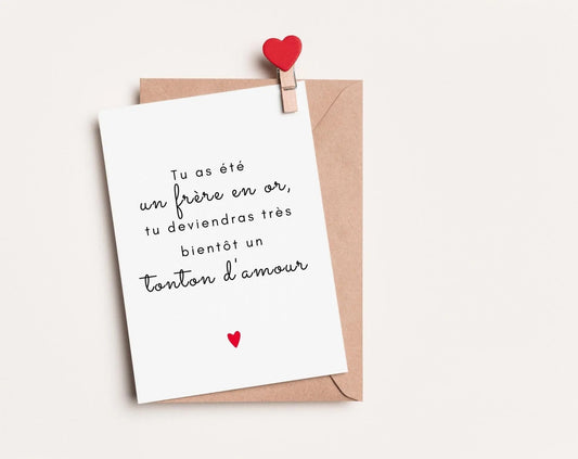 Tu as été un frère en or, tu deviendras très bientôt un tonton d'amour - Carte annonce grossesse