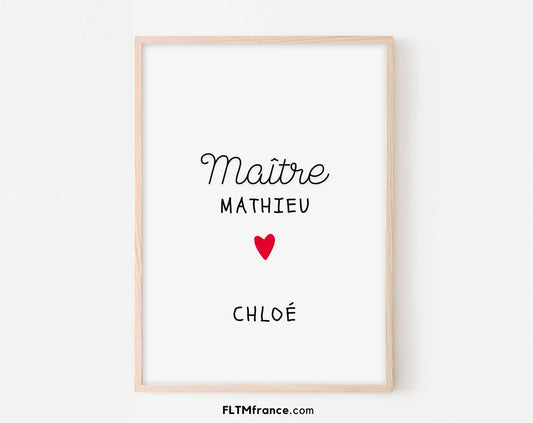À personnaliser avec les prénoms de l’enfant et du maître, une belle façon de le remercier formellement.