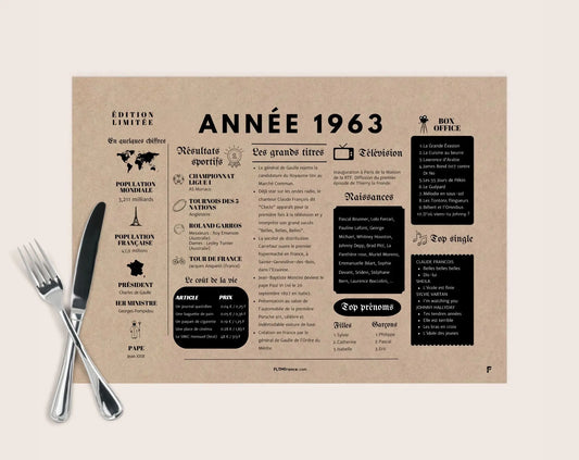 Set de table année de naissance 1963 - Anniversaire 62 ans