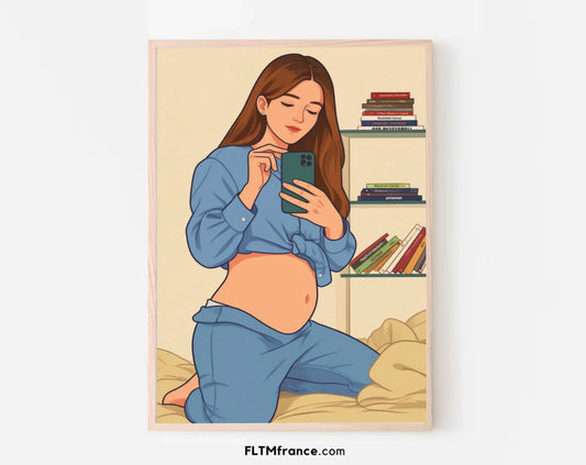 Affiche personnalisée dessin réaliste future maman (grossesse) – Portrait digital illustration