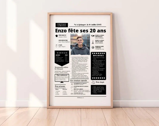 Affiche personnalisée anniversaire 20 ans - Année de naissance