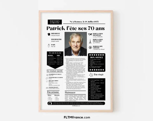 Affiche personnalisée anniversaire 70 ans - Année de naissance