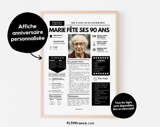 Affiche personnalisée anniversaire 90 ans - Année de naissance