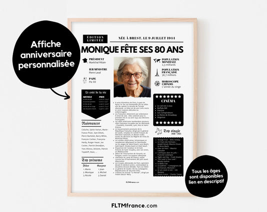 Affiche personnalisée anniversaire 80 ans - Année de naissance