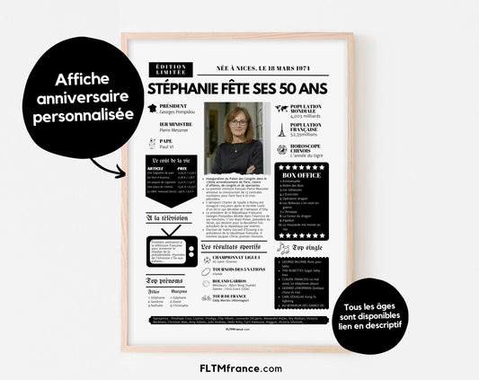 Affiche personnalisée anniversaire 50 ans - Année de naissance