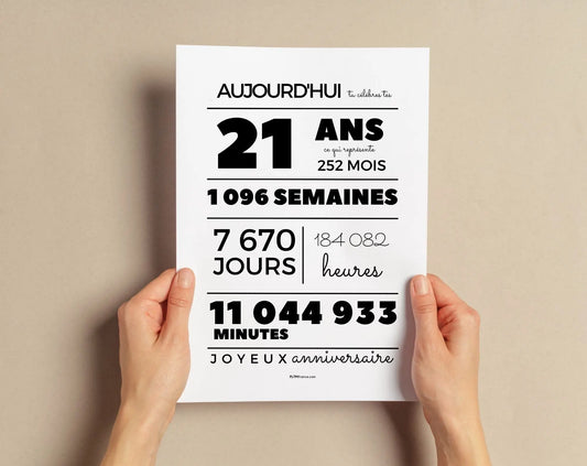 Affiche 21 ans, 252 mois, 1096 semaines - Carte anniversaire