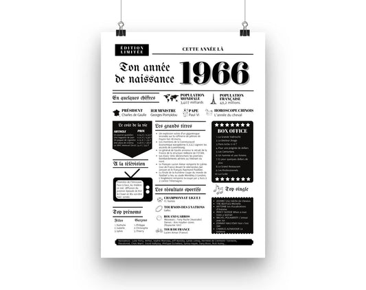 Affiche année de naissance 1966 - Cadeau anniversaire 59 ans