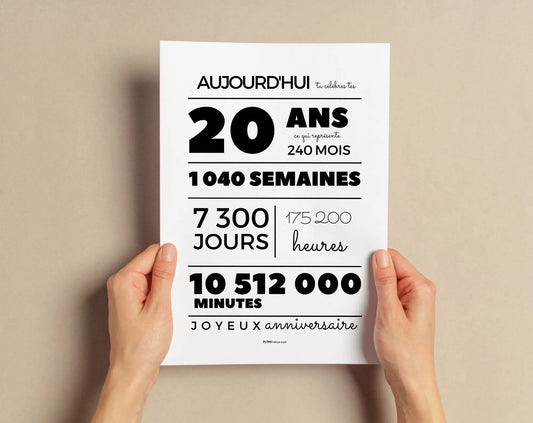 Affiche 20 ans, 240 mois, 1040 semaines - Anniversaire 20 ans