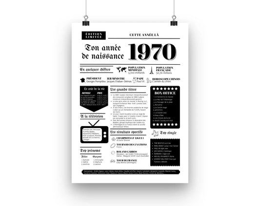Affiche année de naissance 1970 - Cadeau anniversaire 55 ans