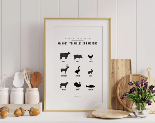 Affiche viandes, volailles et poissons - Affiche de cuisine