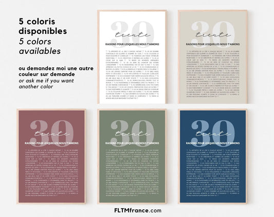 Affiche personnalisée 30 raisons pour lesquelles nous t'aimons - Cadeau 30 ans