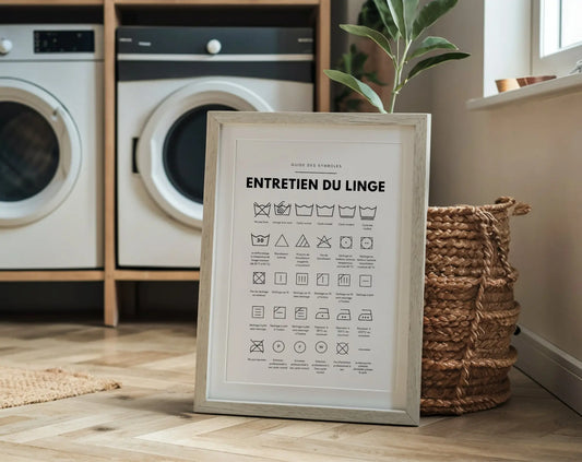 Affiche Entretien du linge - Guide des symboles entretien du linge machine