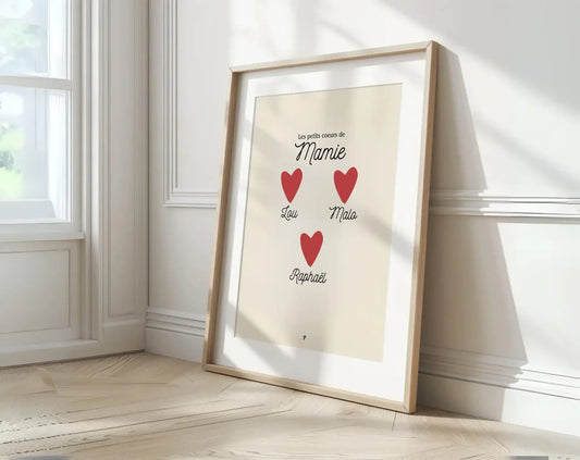 Affiche Les petits coeurs de Mamie - Cadeau personnalisé pour une grand-mère
