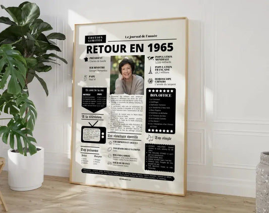 Affiche rétrospective année 1965 - Cadeau personnalisé 60 ans
