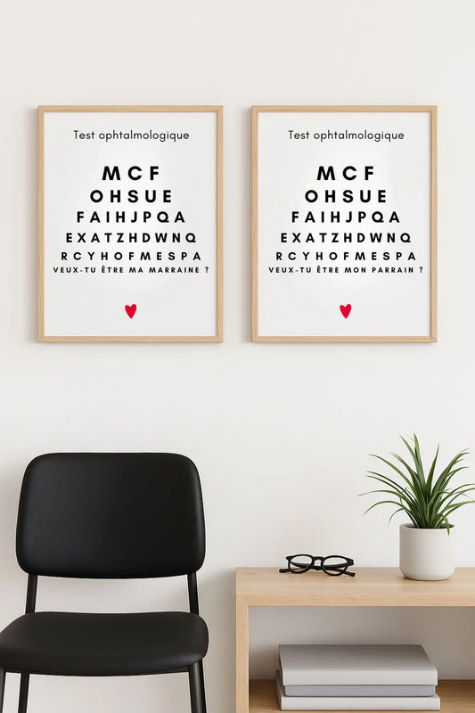 Veux-tu être ma marraine ? - Affiche test ophtalmologique - Demande marraine originale