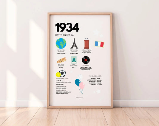 Affiche année de naissance 1933 - Cadeau anniversaire 92 ans