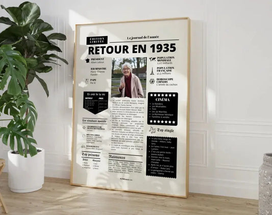 Affiche rétrospective année 1935 - Cadeau personnalisé 90 ans