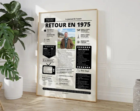 Affiche rétrospective année 1975 - Cadeau personnalisé 50 ans