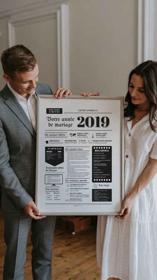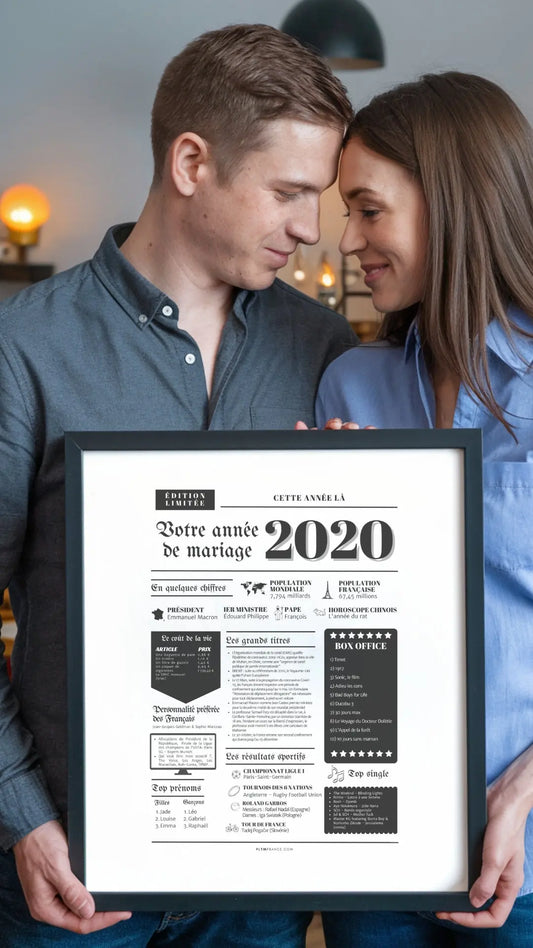 Affiche Année de mariage 2020 - Noces de bois - 5 ans de mariage