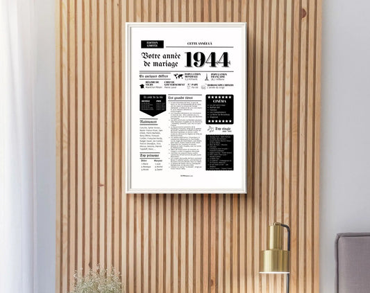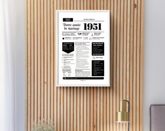 Affiche Année de mariage 1950 - Noces d'albâtre - 75 ans de mariage