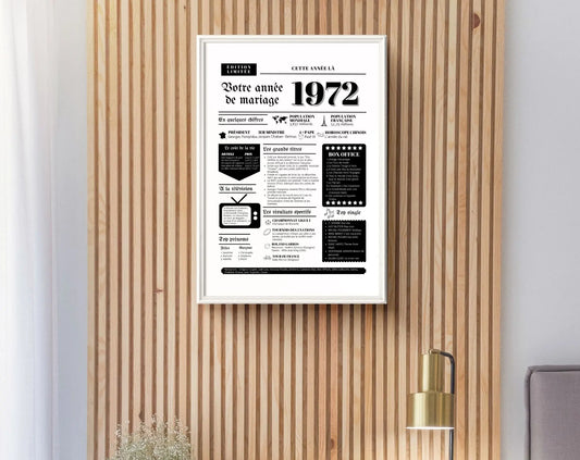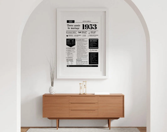 Affiche Année de mariage 1953 - Noces de titane - 72 ans de mariage