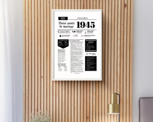 Affiche Année de mariage 1945 - Noces de chêne - 80 ans de mariage