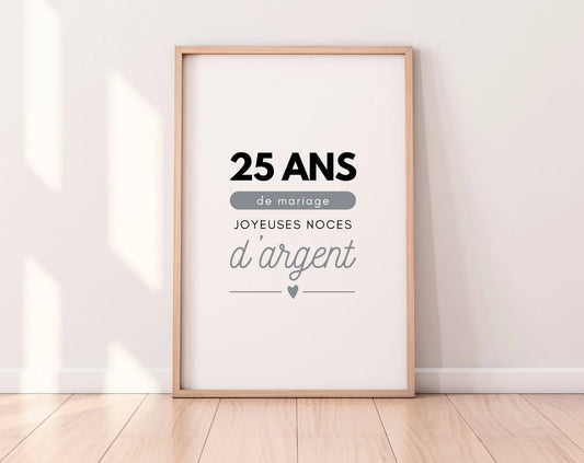 Affiche 25 ans de mariage - Noces d'argent - Cadeau anniversaire de mariage