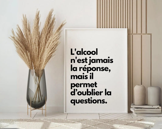 L'alcool n'est jamais la réponse - Affiche citation humour