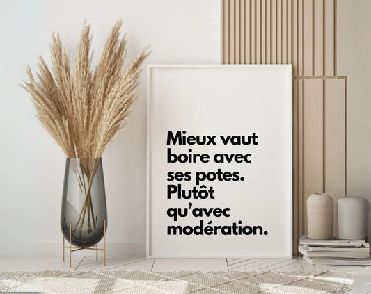 Mieux vaut boire avec ses potes - Affiche citation humour