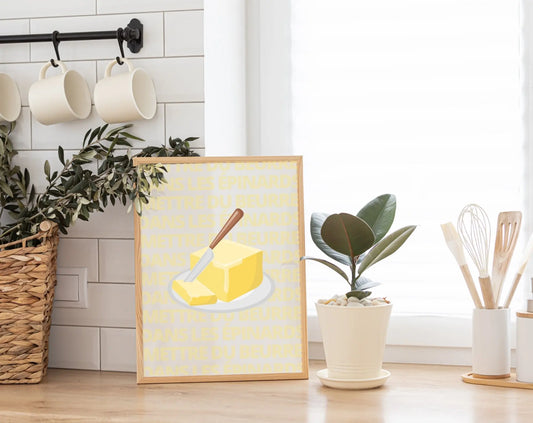 Affiche Mettre du beurre dans les épinards - Expression culinaire Française