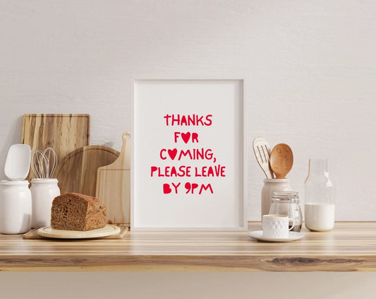 Affiche Thanks for coming please leave by 9pm - Décoration cuisine humour