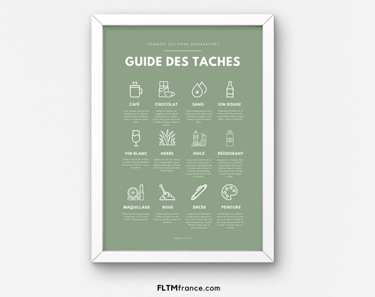 Affiche Guide des taches coloris verts - Entretien du linge buanderie