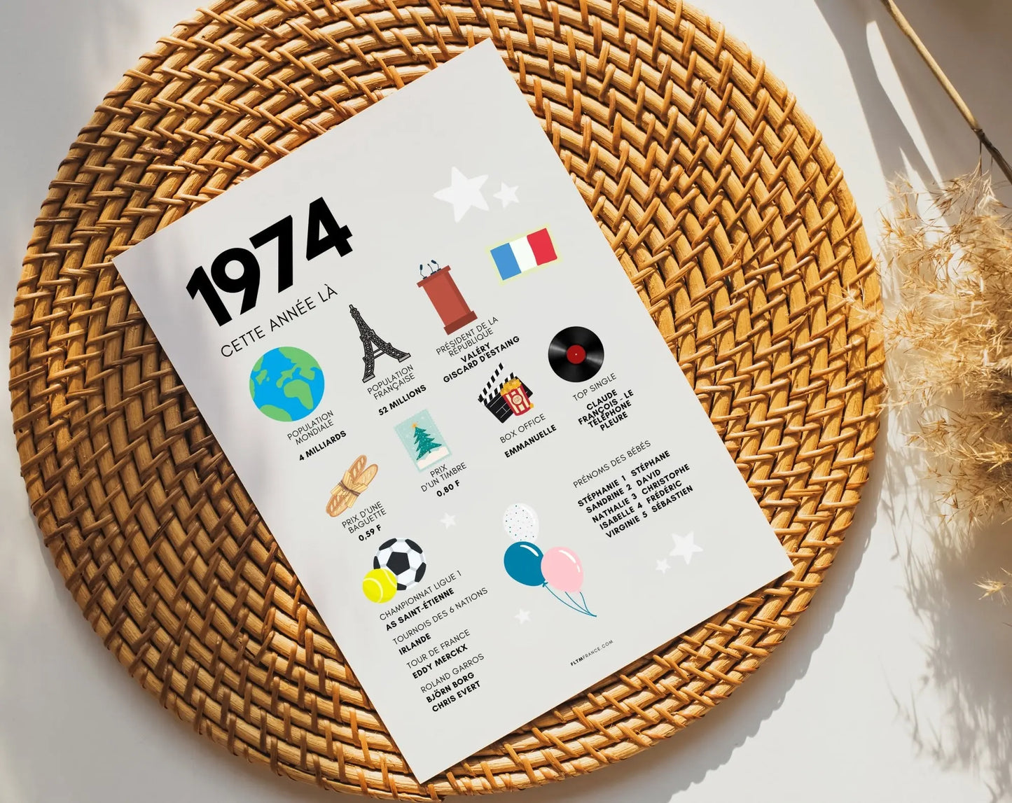 Affiche Anniversaire 1974 Cette année là - Cadeau unique pour les 50 Ans