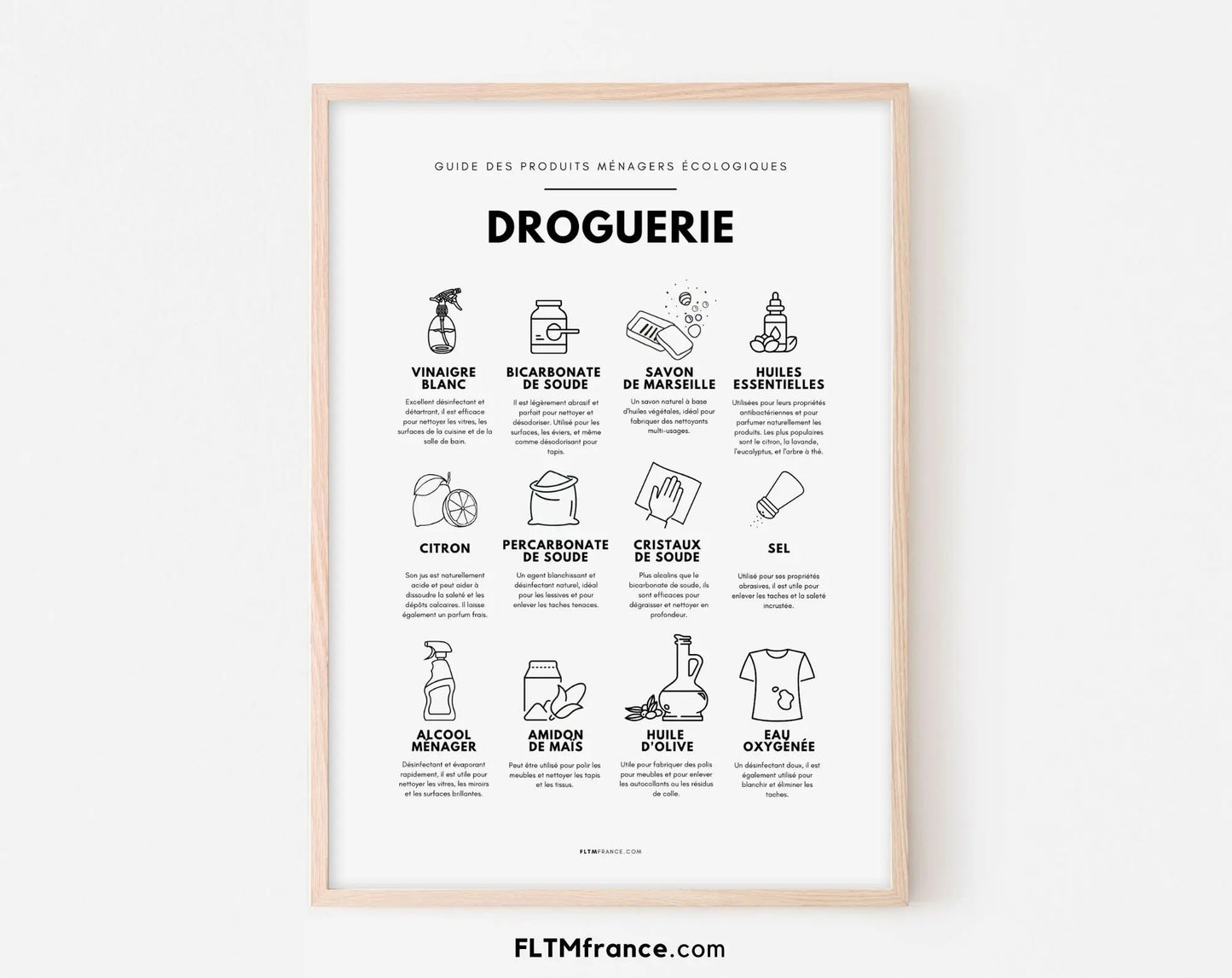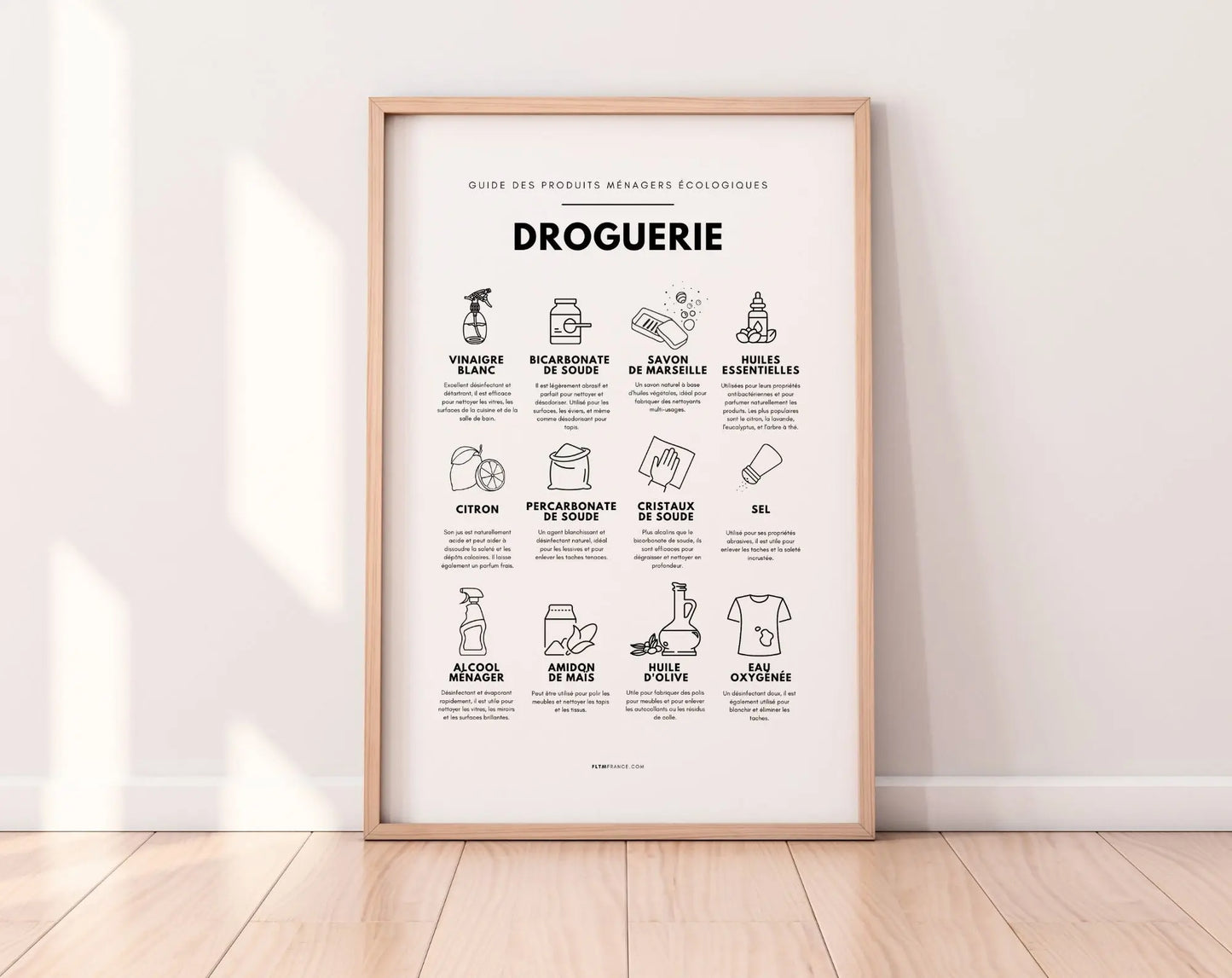 Envie d’une déco utile, naturelle et esthétique pour ta buanderie ou ta cuisine ? Ce lot d’affiches “Droguerie & entretien du linge” est fait pour toi ! Conçues pour t’aider à te repérer dans les produits ménagers écologiques, ces affiches décoratives te donnent des repères visuels clairs tout en apportant une touche soignée à ton intérieur. Beaux visuels, infos pratiques et ambiance éco-friendly garantie.