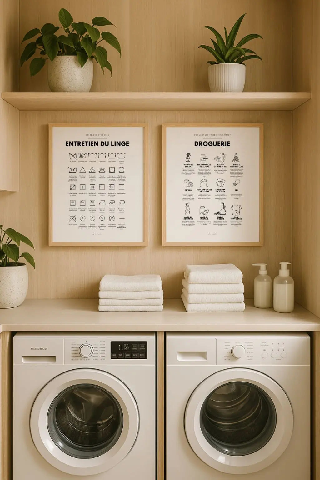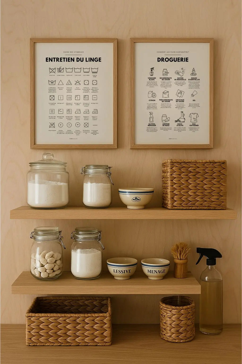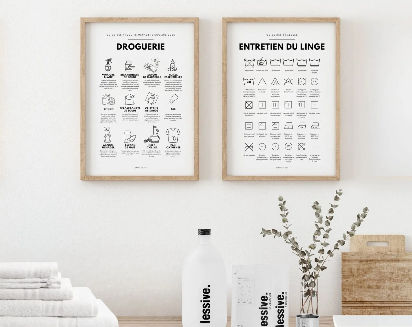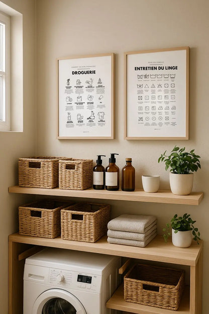 Avec les affiches Droguerie & entretien du linge, tu combines style et efficacité dans tes espaces techniques. Que ce soit pour te repérer rapidement, sensibiliser toute la famille ou simplement rendre ta buanderie plus jolie, elles sont le petit plus qui change tout. Pratique, beau, et éco-responsable : que demander de plus ?