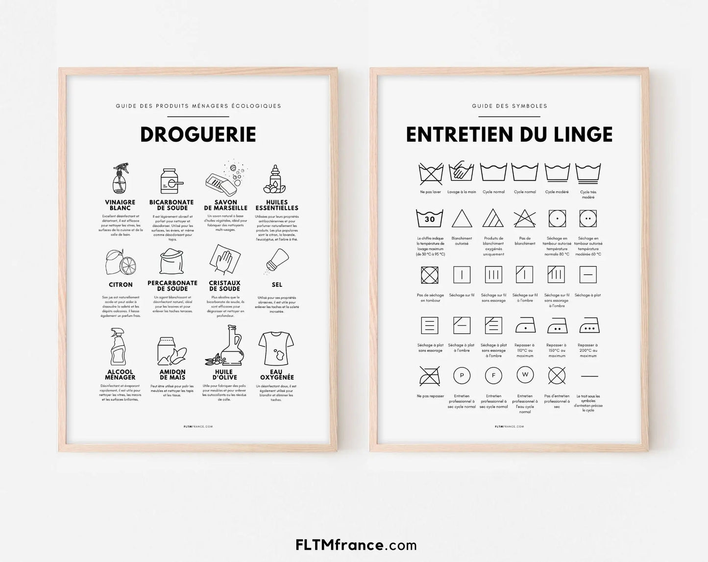 🧼 Affiches Droguerie & entretien du linge – Lot d’affiches déco pratiques à imprimer