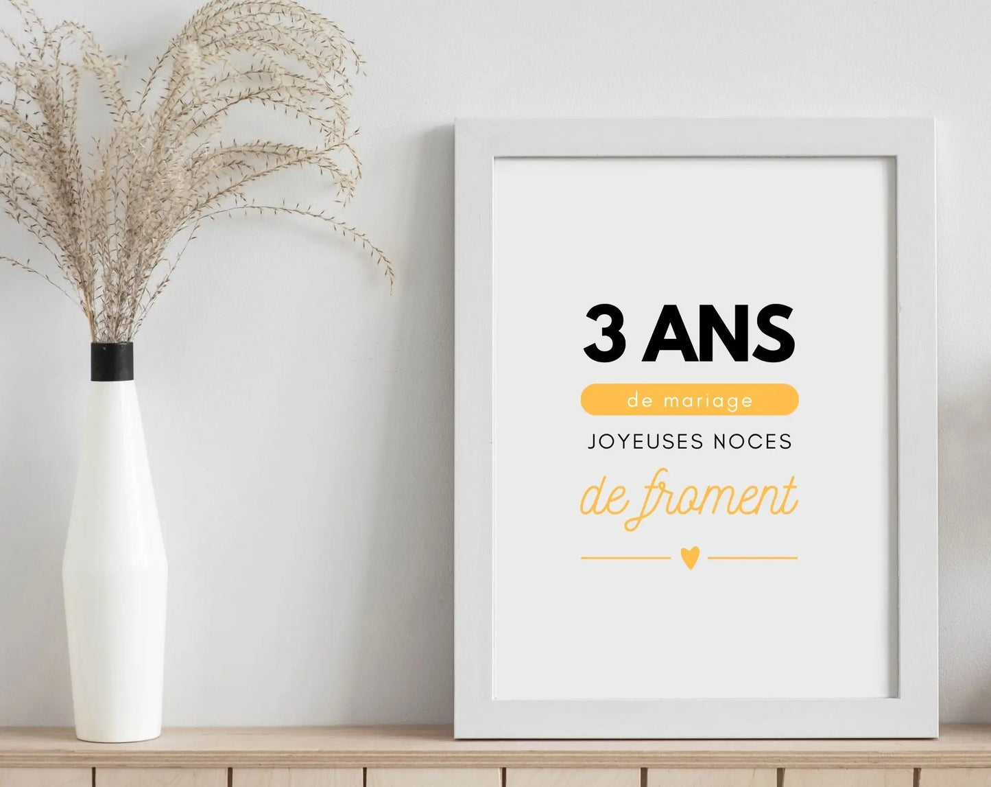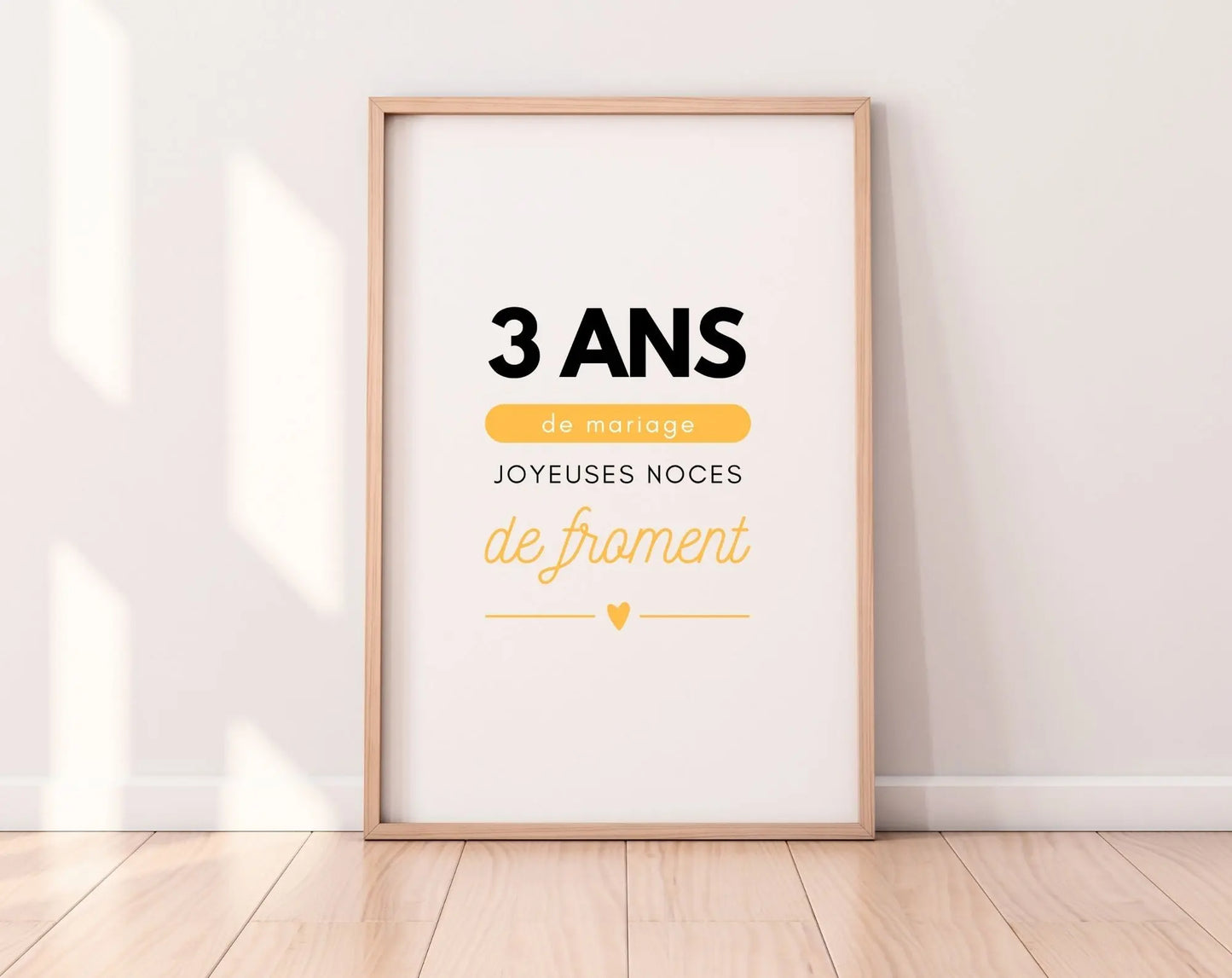 Affiche personnalisée Joyeuses Noces de froment – 3 ans de mariage
